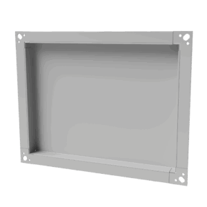 Formteil, gefalzt in Industrieausführung aus verzinkten Stahl oder Edelstahl mit aufgesteckter Kanalflanschverbindung (4-Loch-Eckbefestigung). Wahlweise mit Wärme- oder Schallisolierung.