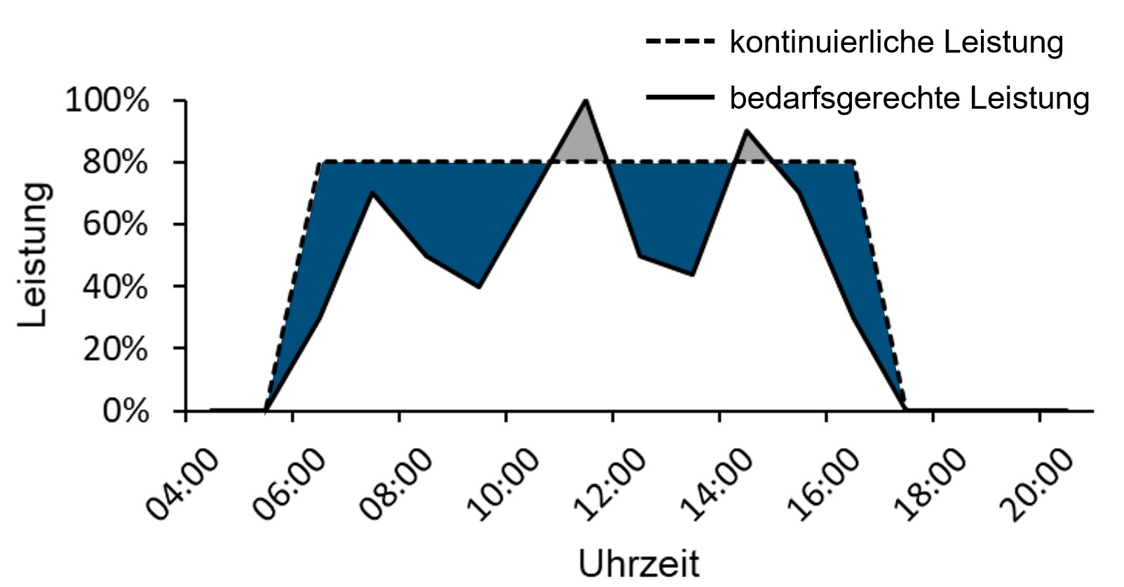 (durchgezogene Linie) bedarfsgerechter Betrieb