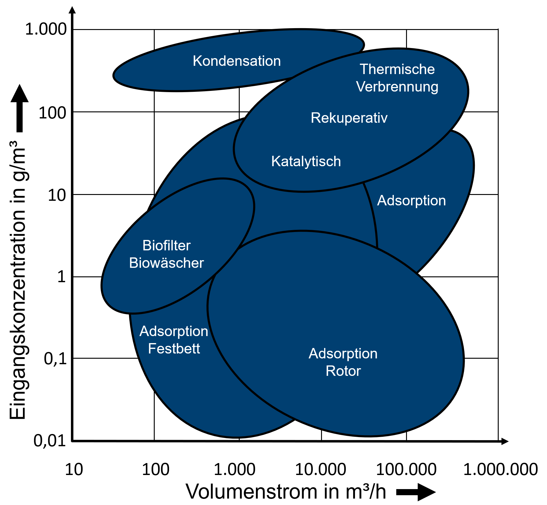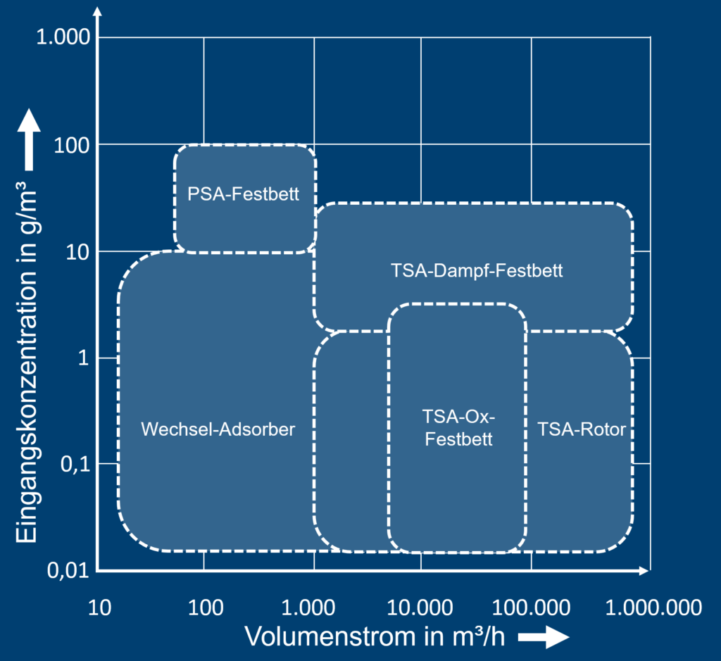 Adsorber finden in der Industrie Anwendung, in der die Abluft mit Schadstoffen versetzt ist. Um die Grenzwerte der TA-Luft einzuhalten, können technische Adsorber verwendet werden, insbesondere bei flüchtigen organischen Verbindungen. Dazu sind nach Anwendungsfall verschiedene Konzepte entwickelt worden, die abhängig von Konzentration und Volumenstrom sind.